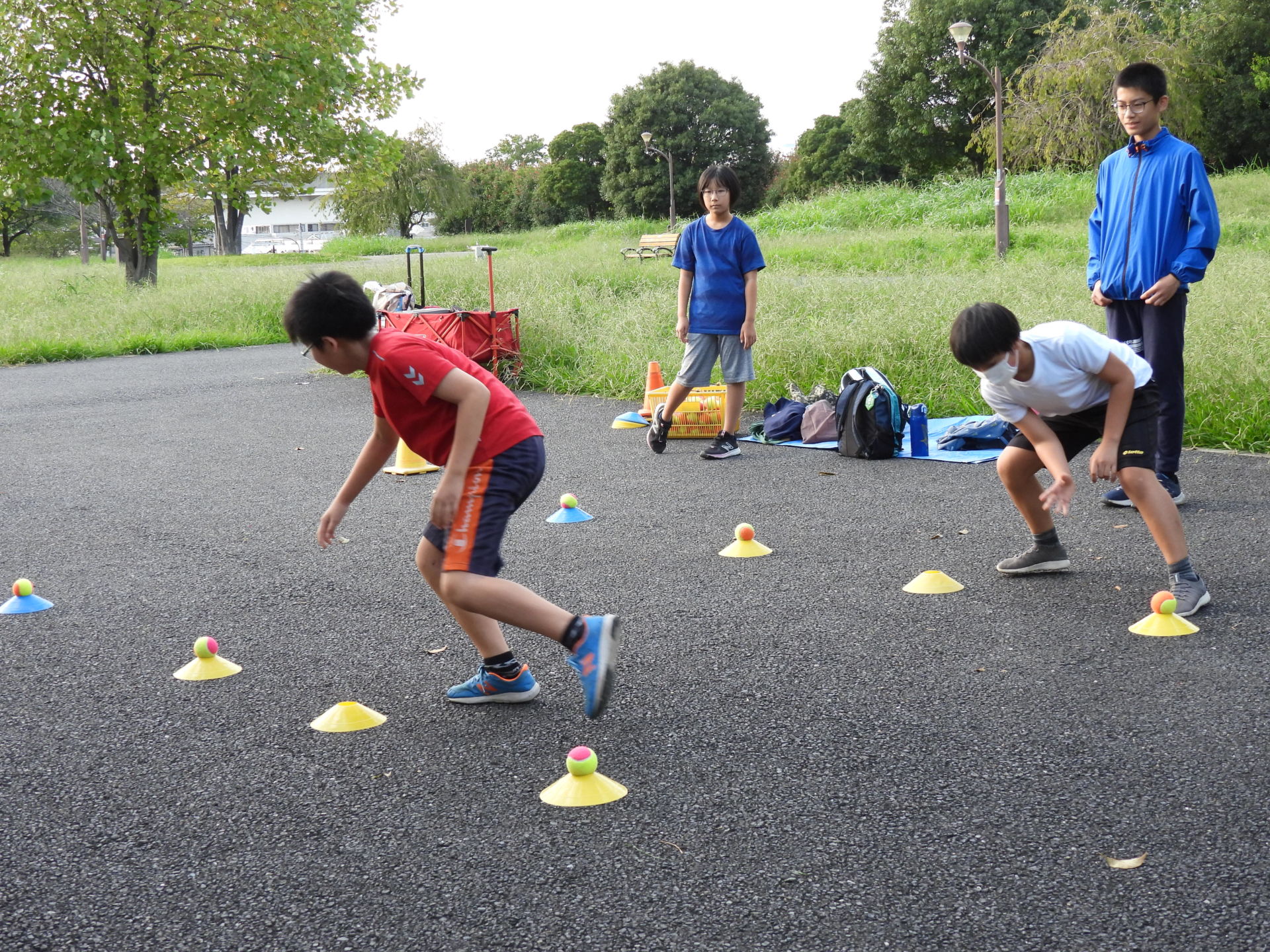 マイドリンクを用意して、5分前に駐車場へ集合してください。