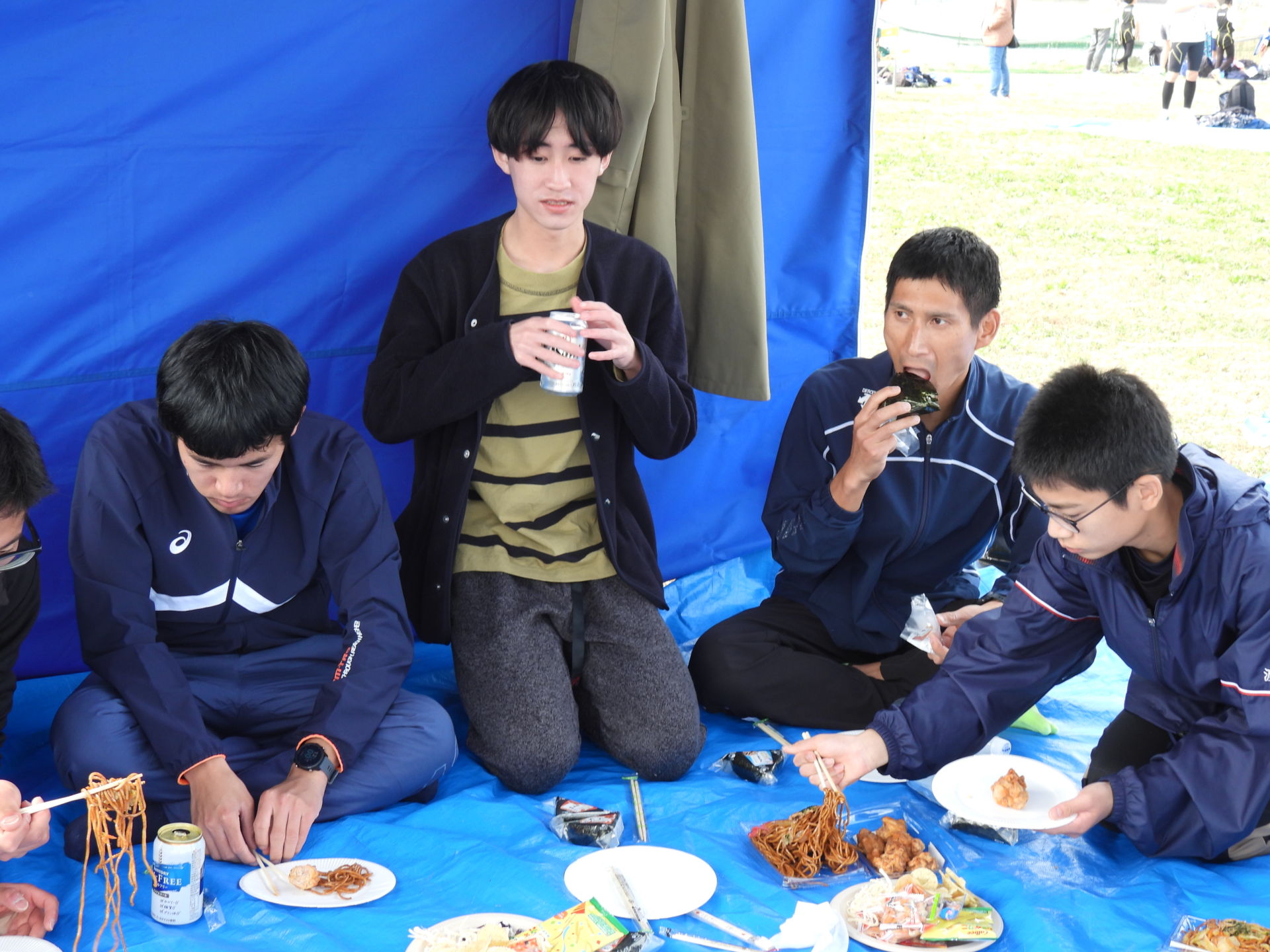 マイドリンクを用意して、5分前に駐車場へ集合してください。